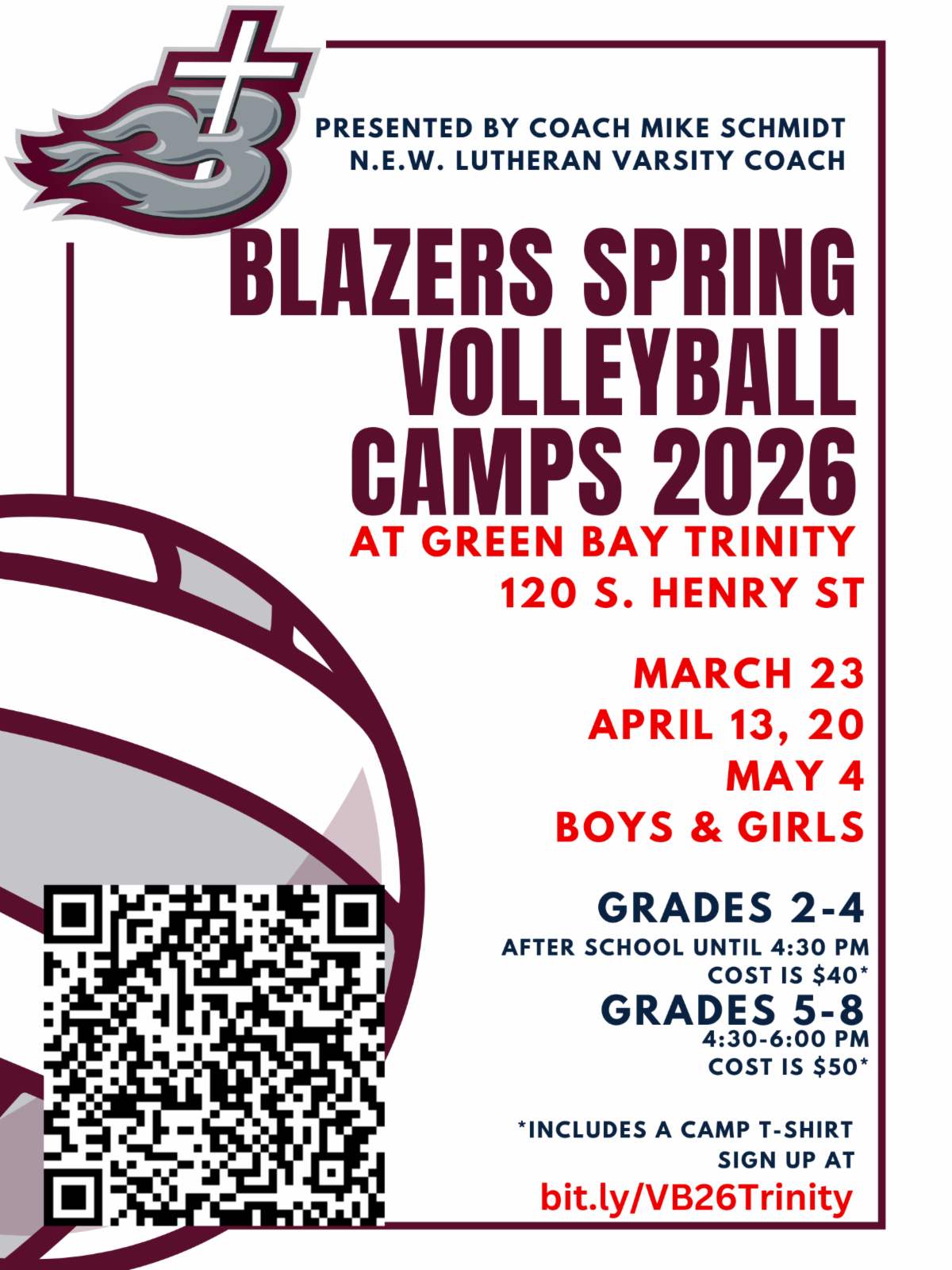 Mike Schmidt, Coach of the NEW Lutheran HS Varsity Volleyball team is hosting a Blazer Spring Volleyball Camp at several different local schools. You need not be a member of that school to attend the camp(s). All are welcome!